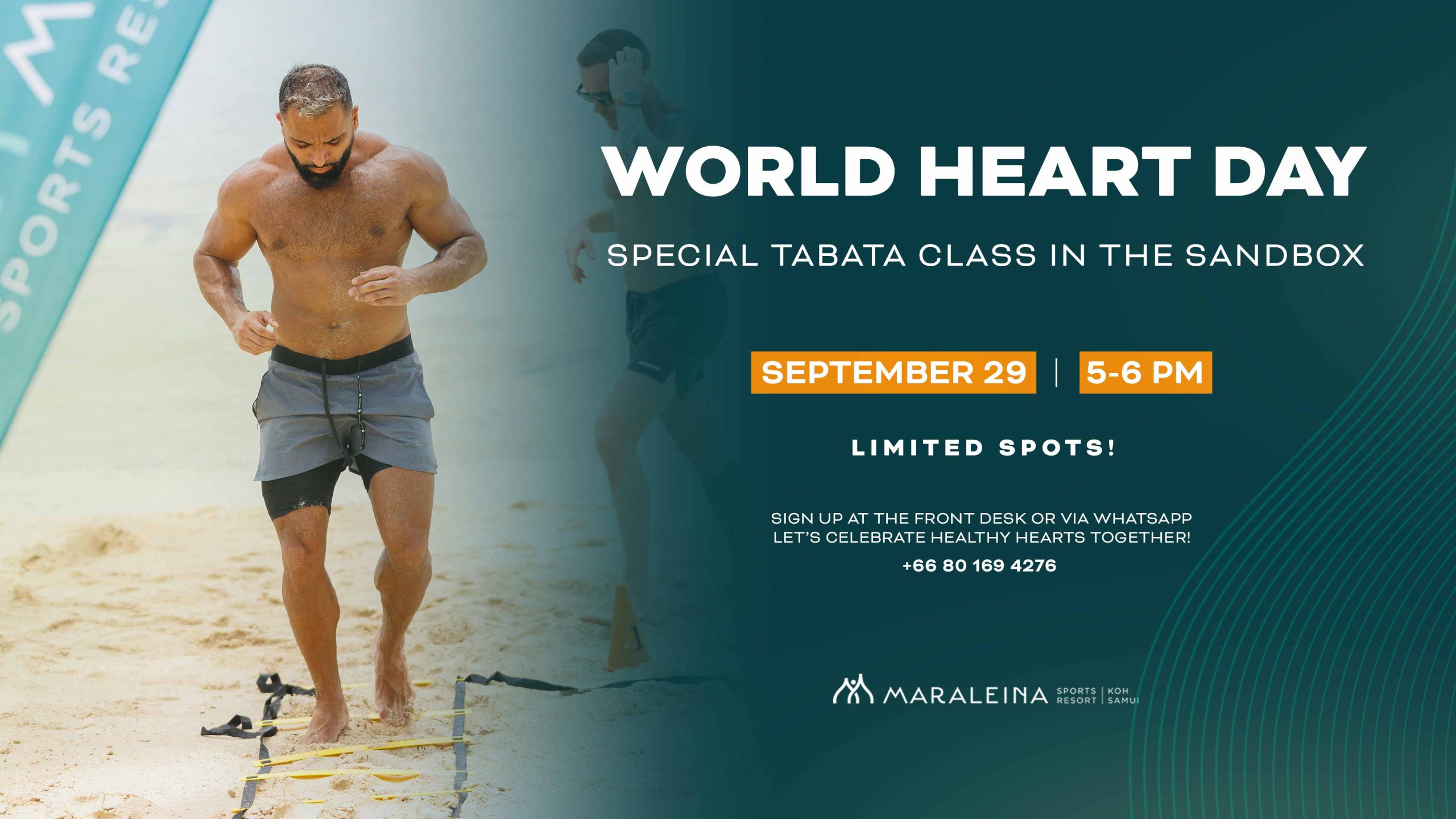 ❤️ World Heart Day Special — TABATA Edition! Join us Monday, Sept 29 at 5PM in The Sandbox for a high-energy TABATA class to celebrate World Heart Day 💪🔥 (Replaces the usual TABATA class) 👉 Limited spots – sign up at the front desk or WhatsApp us! See you there 🏋️‍♂️💙 +66 80 169 4276
