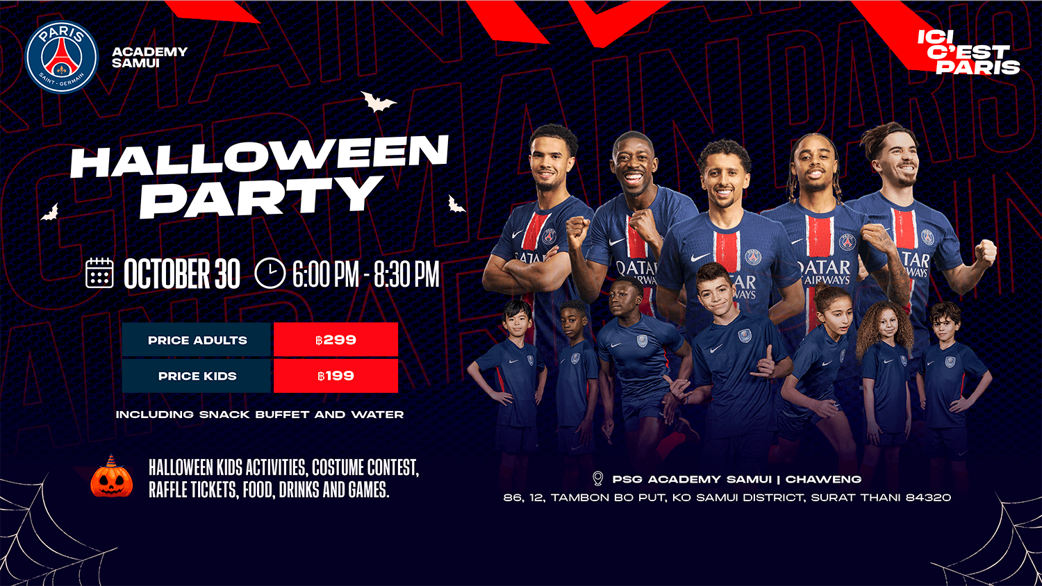 🎃⚽ Join Us for a Halloween Football Party at PSG Chaweng! ⚽🎃 Get ready for a frightfully fun day of football, games, and Halloween activities at our Halloween Football Party! 🧙♀️👻 Date: October 30, 2024 Time: 6pm - 8:30pm Location: PSG Chaweng This event is open to PSG Academy kids and their friends — come […]