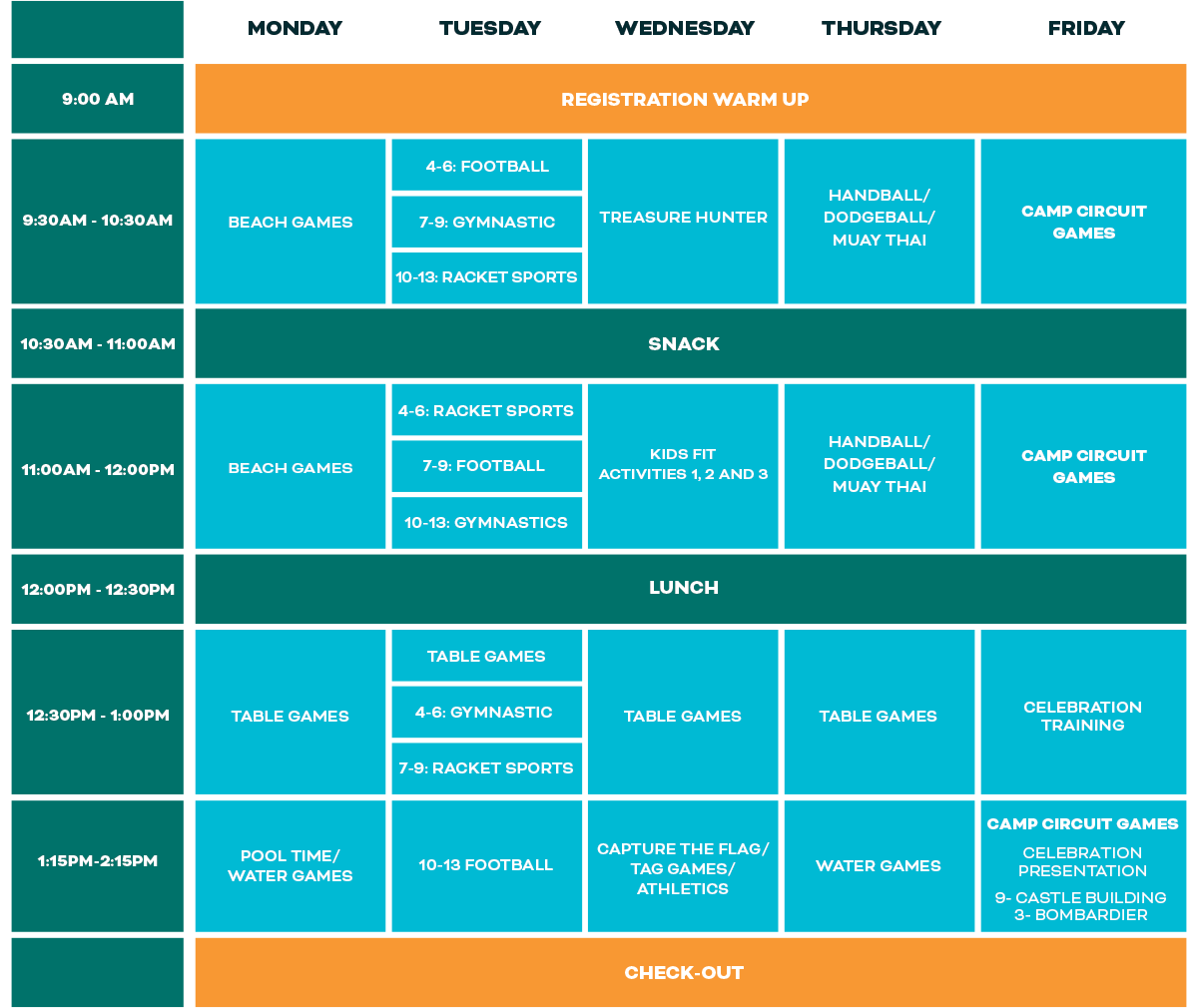 | DATES | AGES | 1 DAY | 5 DAYS | REGISTER |