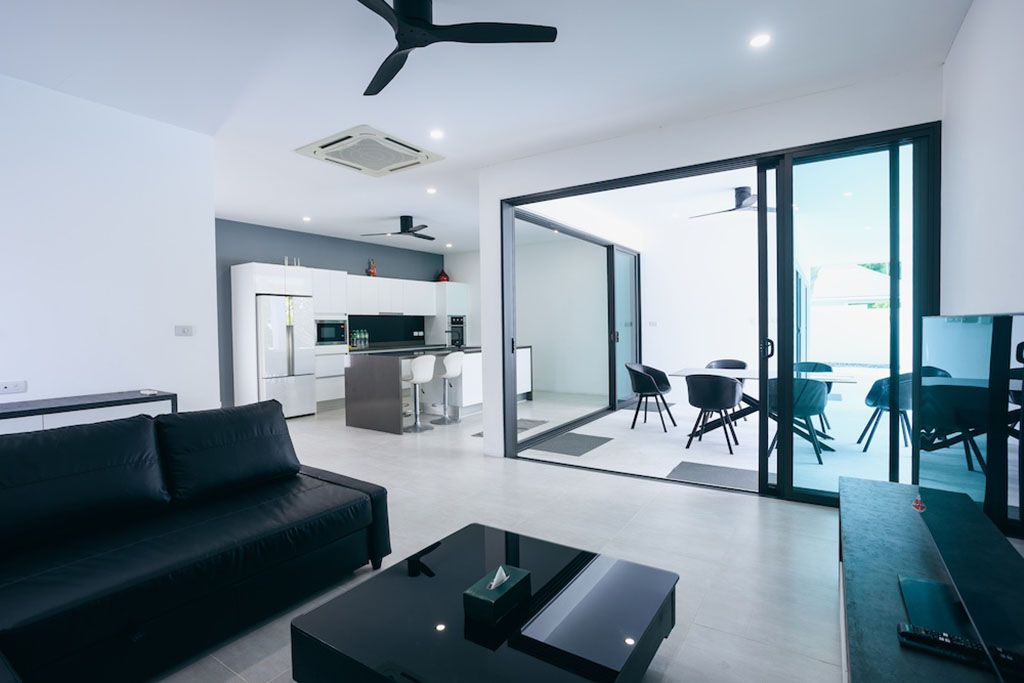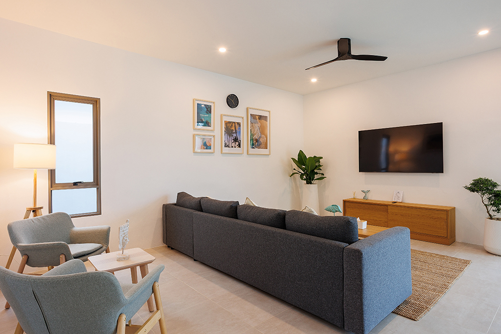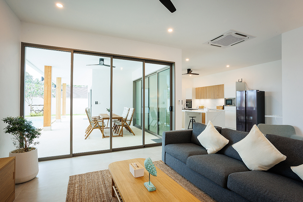 Inside, guests will find three well-appointed bedrooms, each with air conditioning and a full set of in-room amenities. The villa also includes a relaxing lounge area and practical conveniences such as a minibar, refrigerator, kettle, wardrobe, safe, flat-screen TV, and private bathrooms in every room.